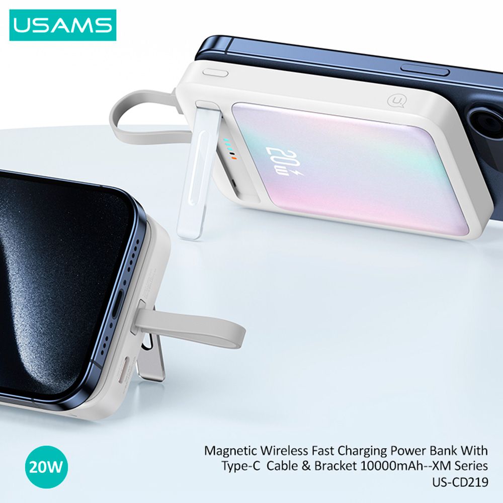 Магнитный беспроводной аккумулятор для быстрой зарядки — серия XM, белый, 10000 мАч US-CD219