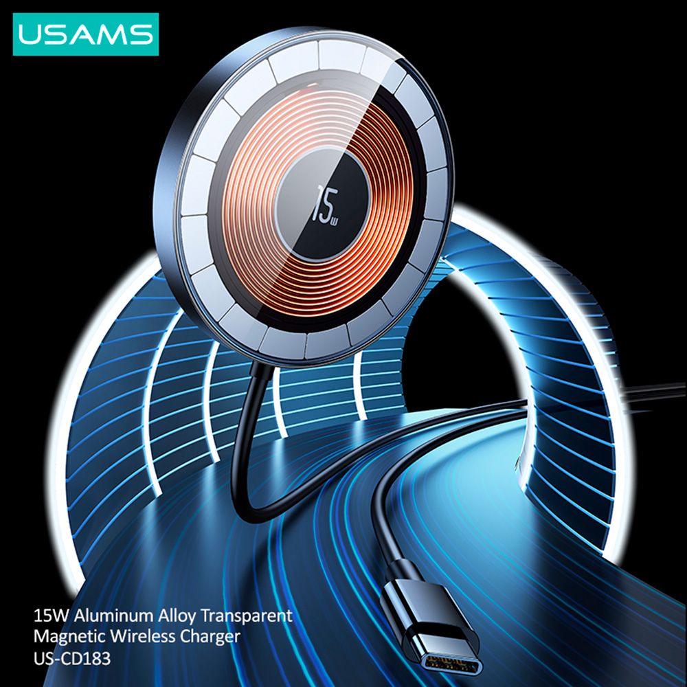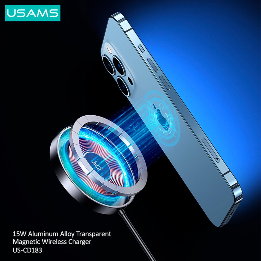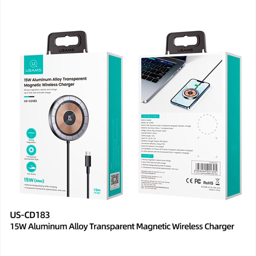 Характеристики Беспроводная зарядка магнитная15W Алюминиевый сплав, прозрачный US-CD183 ЧЕРНОЕ