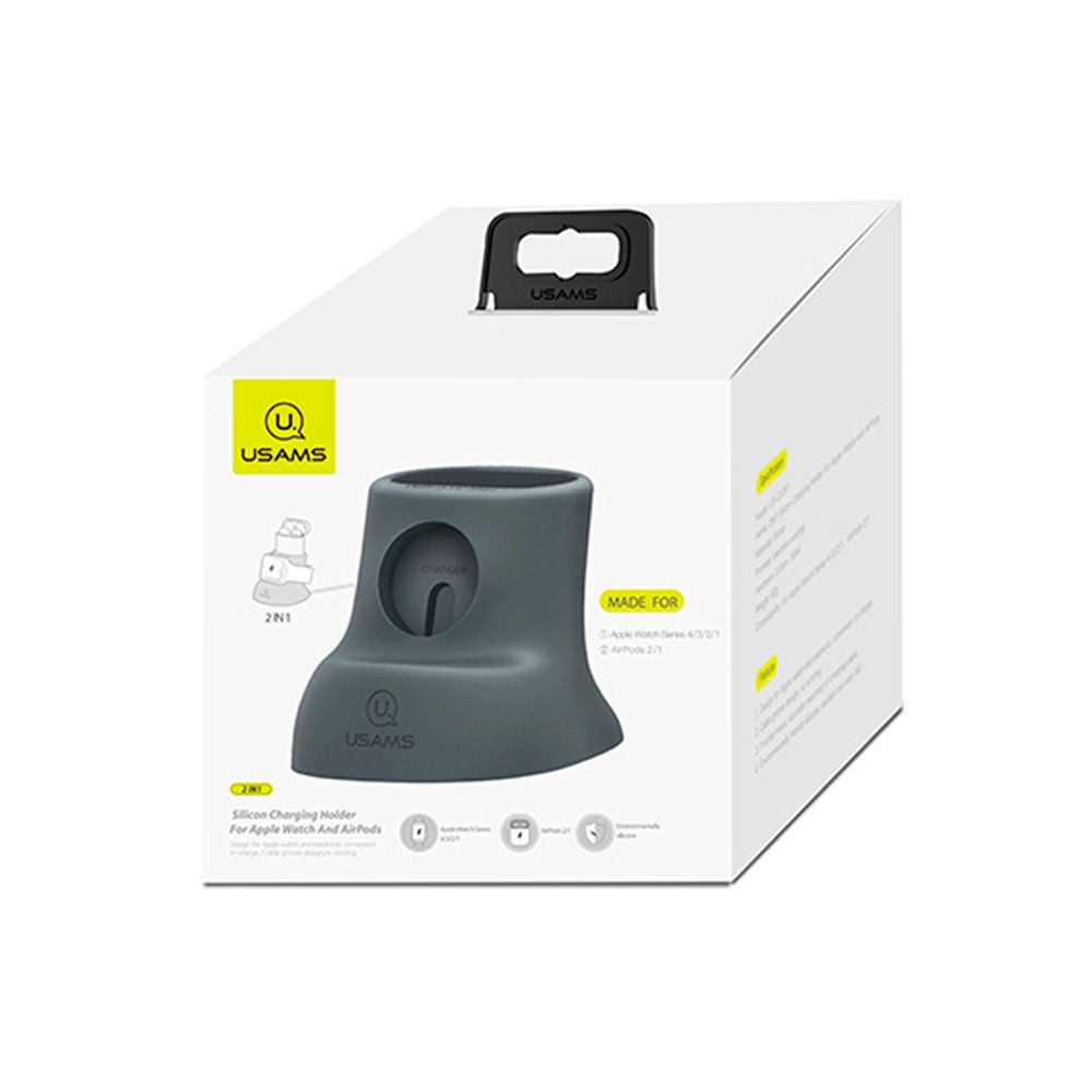 Держатель для зарядки 2IN1 для Apple Часы и AirPods Silicon US-ZJ051 СЕРЫЙ