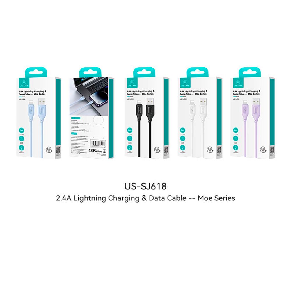 Кабель для зарядки 2,4 А Кабель для зарядки и передачи данных Lightning — серия Moe, US-SJ618 БЕЛЫЙ