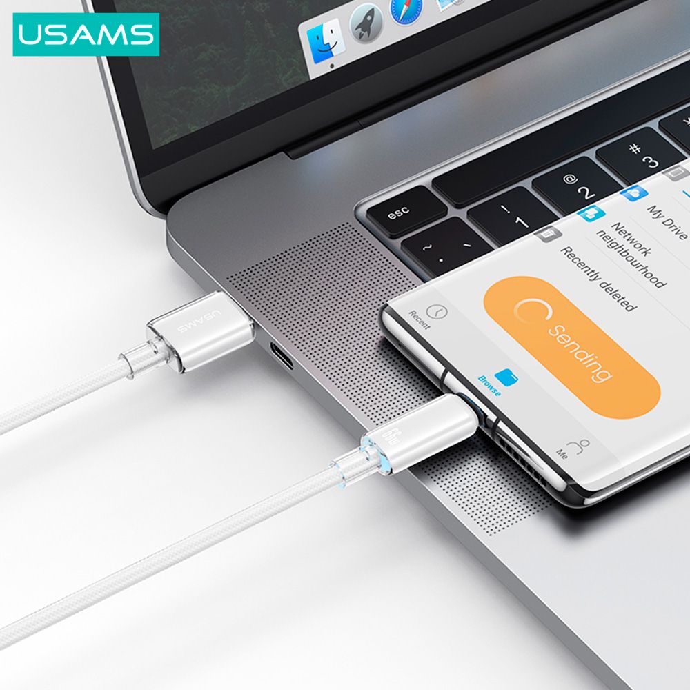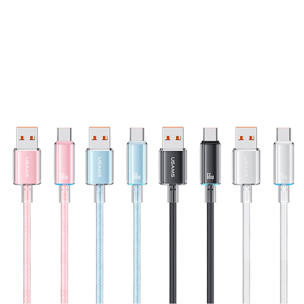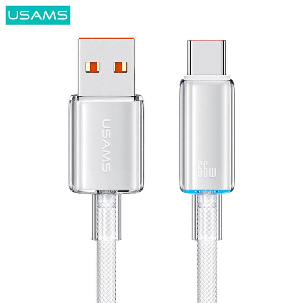 US-SJ658 Type-C 6A Быстрая зарядка Прозрачный Кабель для передачи данных с подсветкой и облаком, серия 1,2 м, БЕЛЫЙ